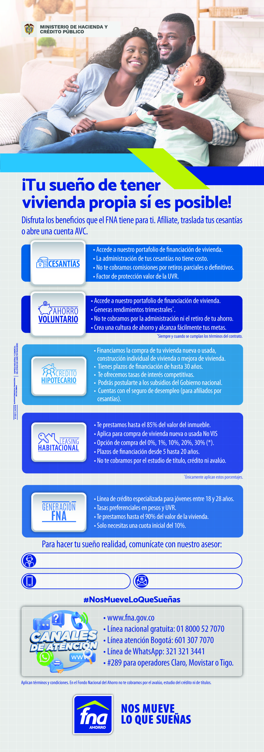 Cada paso que das, es para conquistar el camino, por eso, con el Fondo Nacional del Ahorro, si avanzas hacia lo que más quieres. Trae tus cesantías y transfórmalas en la vivienda propia que siempre quisiste.
