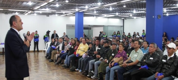 El Presidente Ricardo Arias Mora al reunirse con un grupo de loteros, al que anunció la próxima apertura de un Punto Empresarial del FNA, en la Lotería de Bogotá. Foto: José Vicente Mogollón.