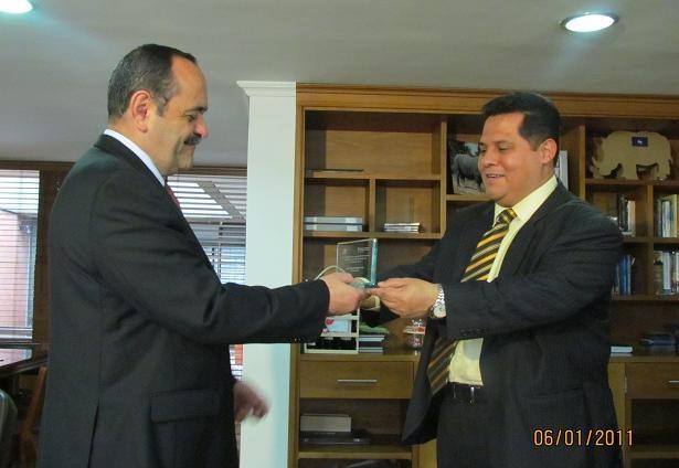 El Presidente Arias recibió el reconocimiento de manos del jefe de la División de Planeación, Henry Amorocho, quien se refirió al Seminario Internacional sobre Experiencias Exitosas, al proceso de Gobierno En Línea, GEL, del Ministerio de Tecnologías de la Información y las Comunicaciones, TIC, a la vez que comentó que el FNA es la entidad que ocupa el primer lugar en el sector vivienda.