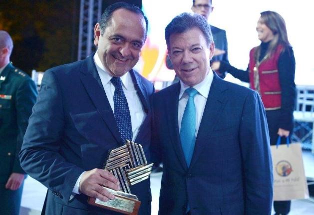 El Primer Mandatario de Colombia, Juan Manuel Santos, con el presidente del Fondo Nacional del Ahorro, FNA, Ricardo Arias Mora, tras el acto de entrega del Premio Nacional de Alta Gerencia. Foto: Cortesía Presidencia de la República. Ver video +