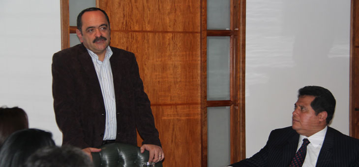De izq. a derecha Presidente Ricardo Arias Mora, derecha a izquierda Henry Amorocho Jefe de división de Planeación dando a conocer el reto que se le viene al FNA tras ocupar el primer puesto en la evaluación de Gobierno en Línea.